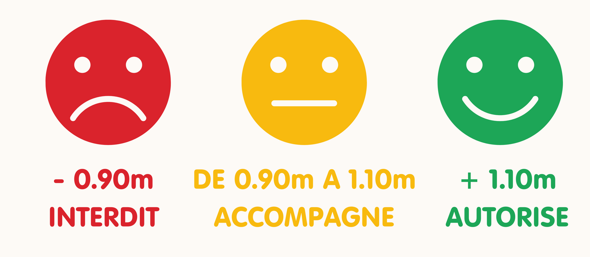 Incluso si un adulto acompaña a un niño que no tiene la altura autorizada, entonces no podrá realizar la atracción por su seguridad.
